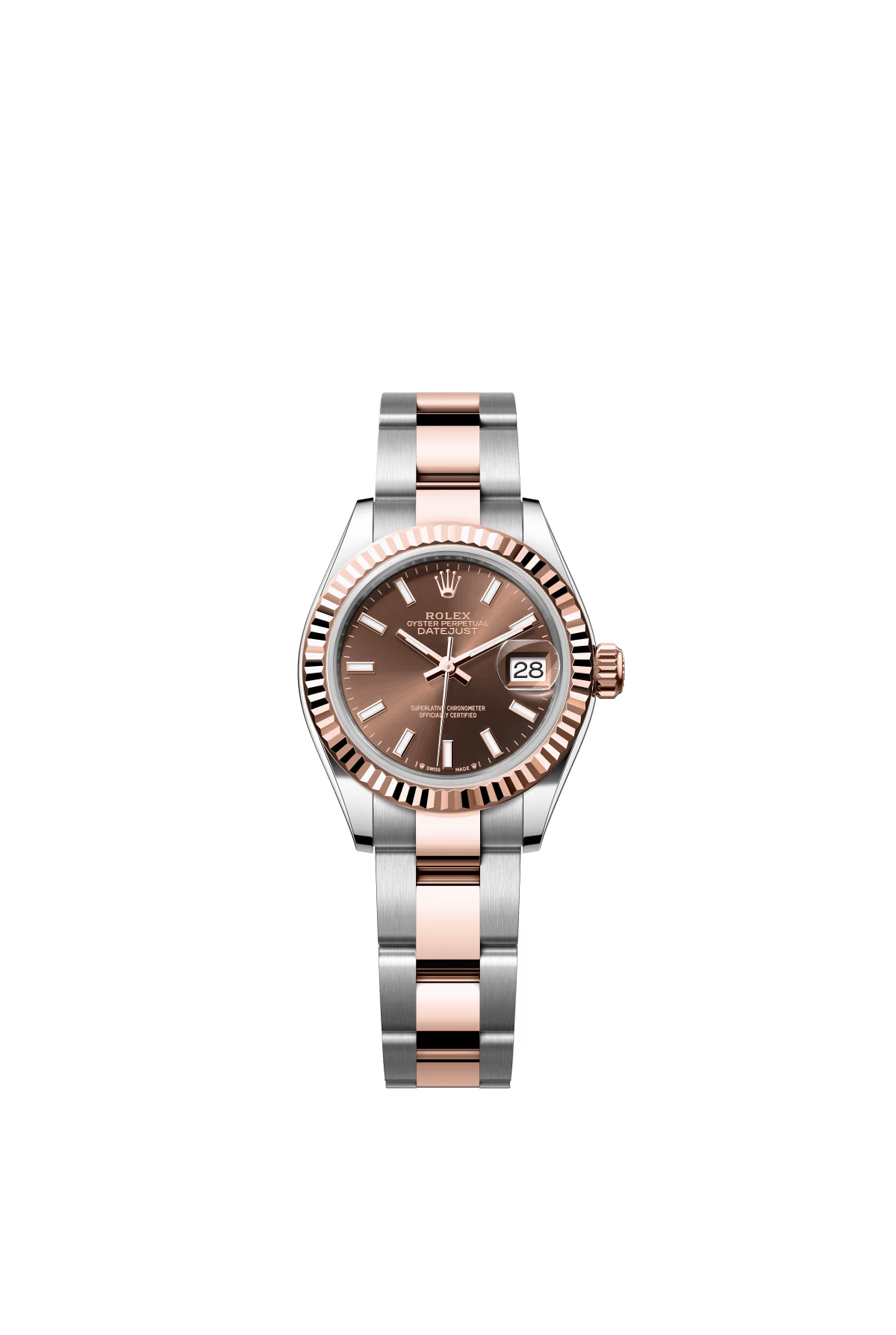 The Oyster Perpetual Lady-Datejust in Everose gold and Oystersteel with a chocolate-coloured dial and an Oyster bracelet. -m279171-0018 28mm