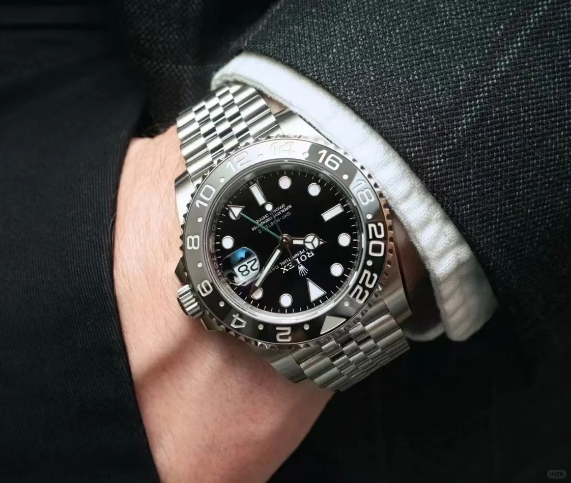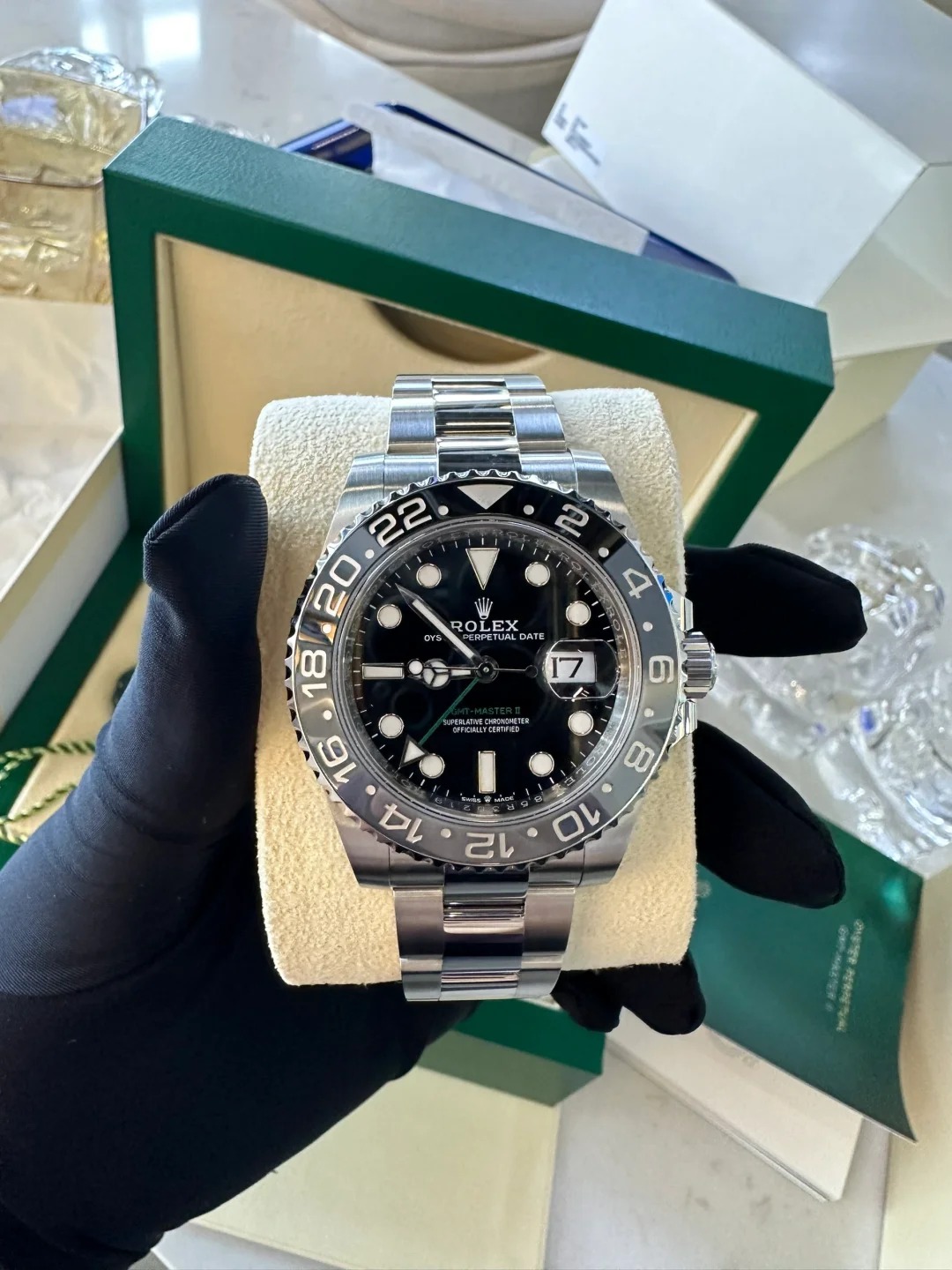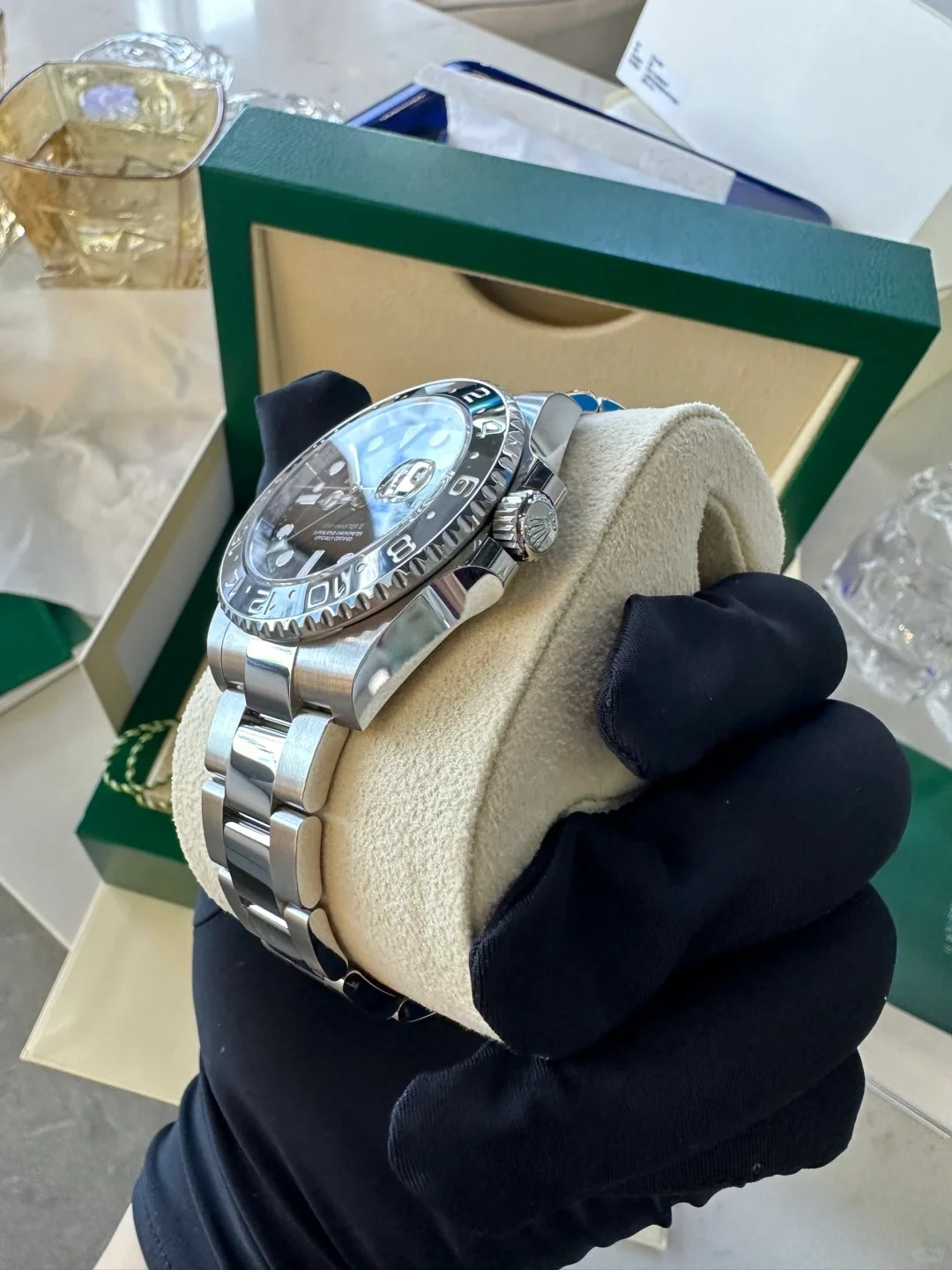 The Oyster Perpetual GMT-Master II in Oystersteel with a black dial and a Jubilee bracelet.