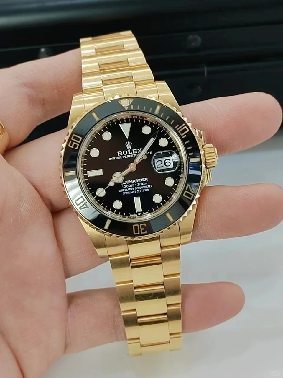 The Oyster Perpetual Submariner Date in 18 ct yellow gold with black Cerachrom insert in ceramic, black dial and oversized luminescent hour markers. -m126618ln-0002 41mm